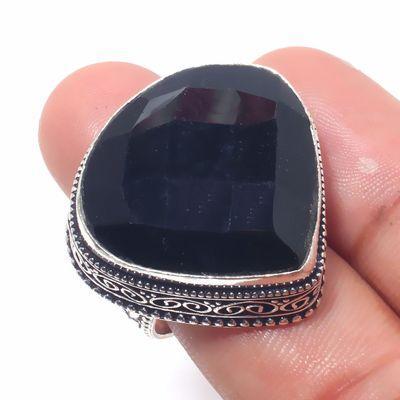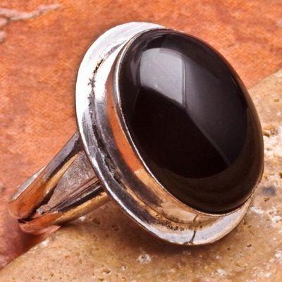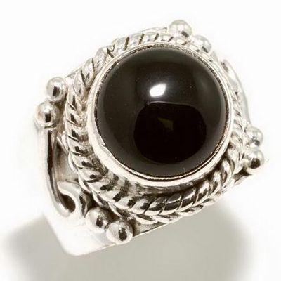 ON-6511 - Belle BAGUE T 54 cabochon en ONYX NOIR 10 mm - Bijou en argent 925 - 35 carats - 7 gr