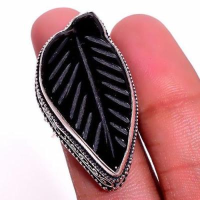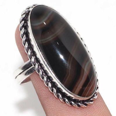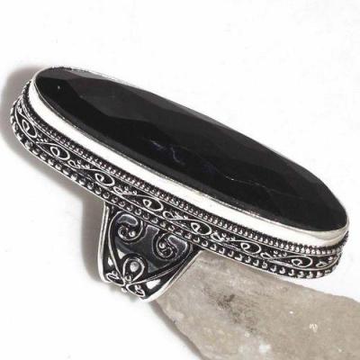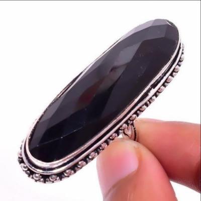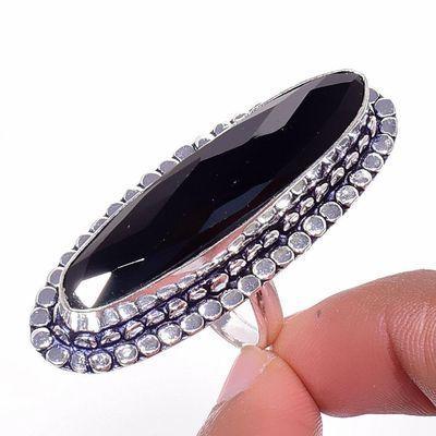 ON-4315 - Belle BAGUE T 55 cabochon en ONYX NOIR 12 x 16 mm - Bijou en argent 925 - 45 carats - 9 gr