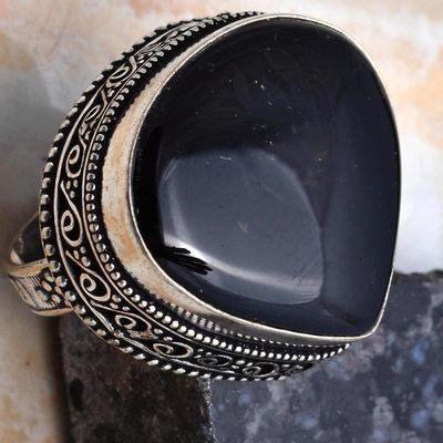 ON-0135 - Belle BAGUE T 59 cabochon en ONYX NOIR 12 x 16 mm - Bijou en argent 925 - 35 carats - 7 gr