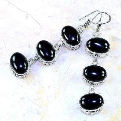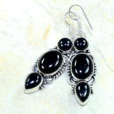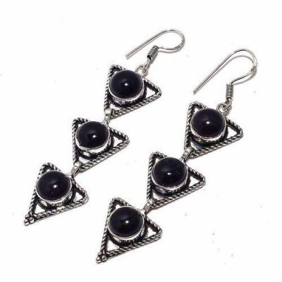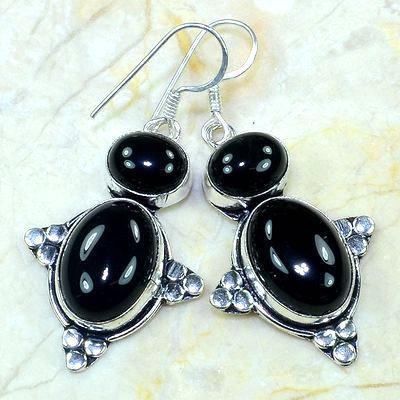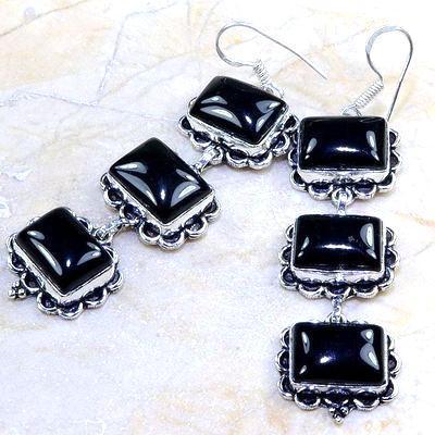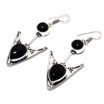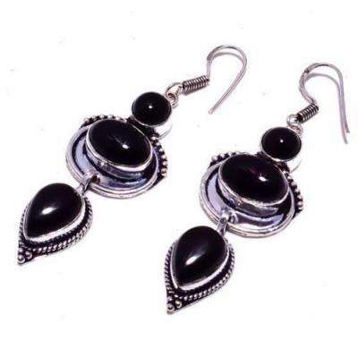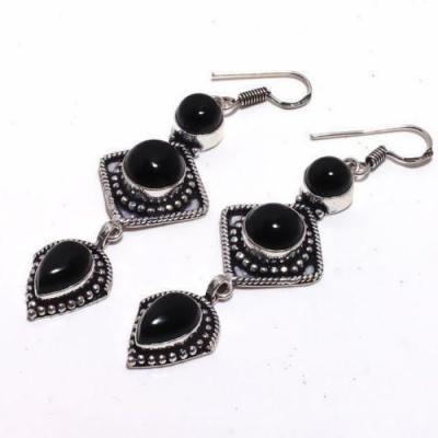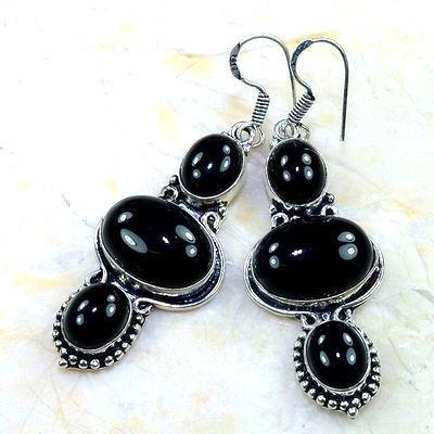 ON-0340 Jolies BOUCLES PENDANTS D'OREILLES 60 mm ONYX noir argent 925 - 70 carats - 14 gr