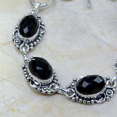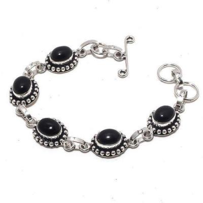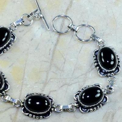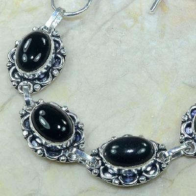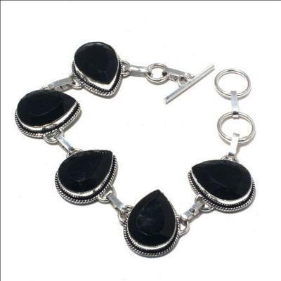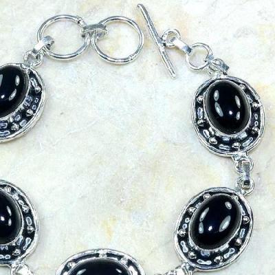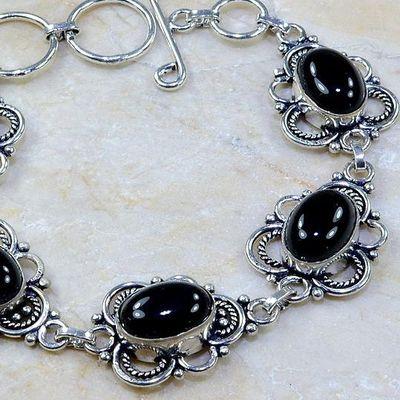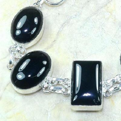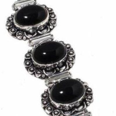 ON-0300 - Joli BRACELET en ONYX Noir et monture argent 925 - 125 carats - 25 gr