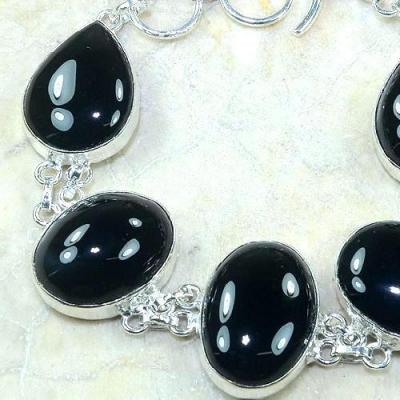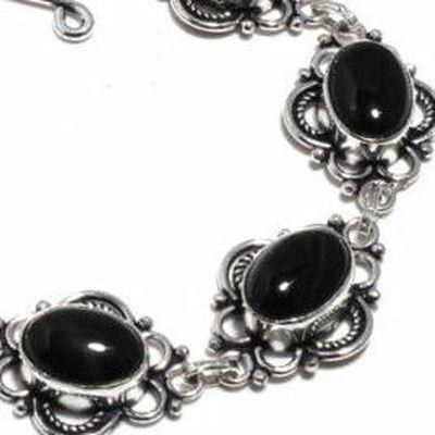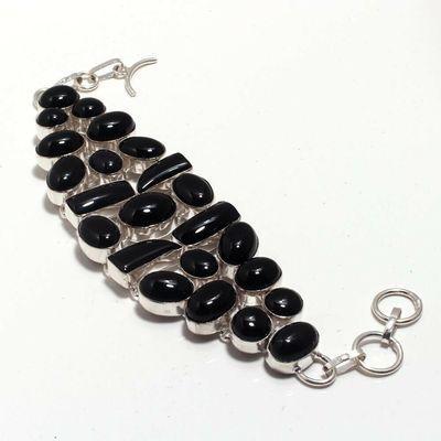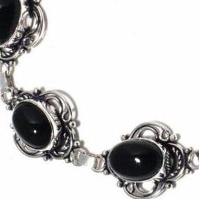 ON-0281 - Joli BRACELET en ONYX Noir et monture argent 925 - 210 carats - 42 gr