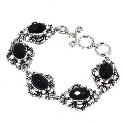 ON-0311 - Joli BRACELET en ONYX Noir facetté et monture argent 925 - 145 carats - 29 gr