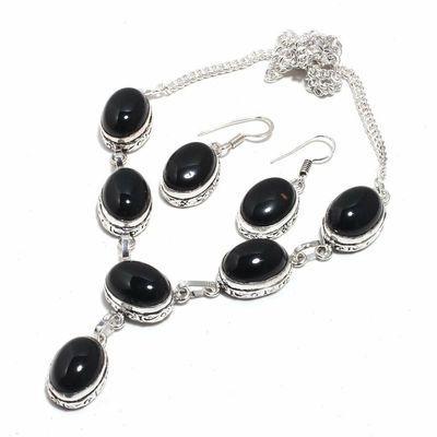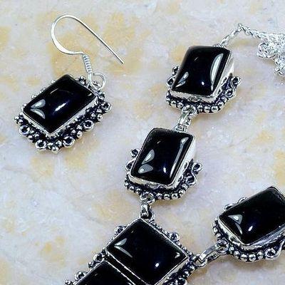 ON-0396 - PARURE assortie : COLLIER + BOUCLES OREILLES en ONYX Noir argent 925 - 200 carats - 40 gr