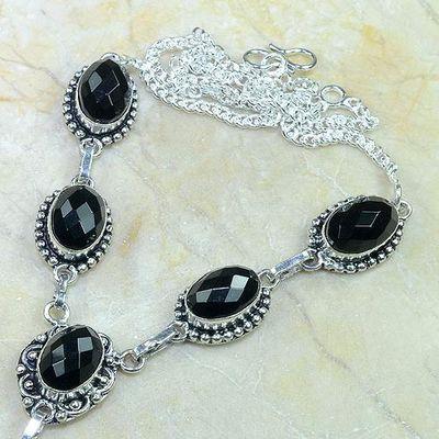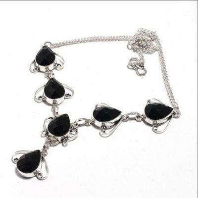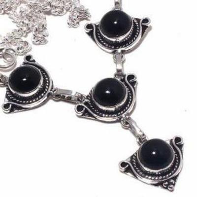 ON-0301 - Joli SAUTOIR, COLLIER, PARURE en ONYX Noir et monture argent 925 - 145 carats - 29 gr