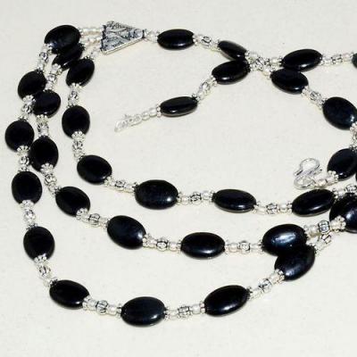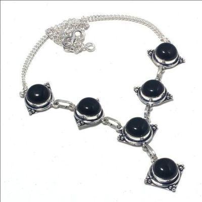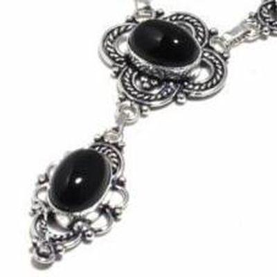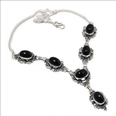 ON-0360 - Joli SAUTOIR, COLLIER, PARURE en ONYX Noir et monture argent 925 - 160 carats - 32 gr