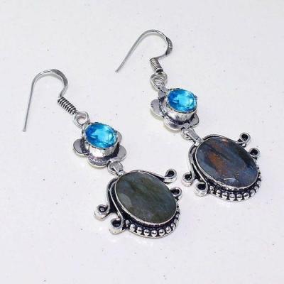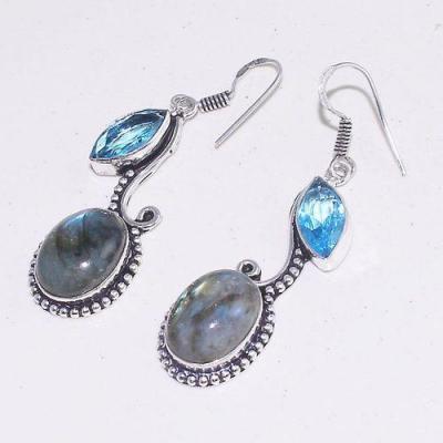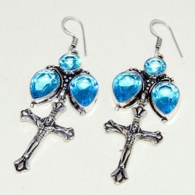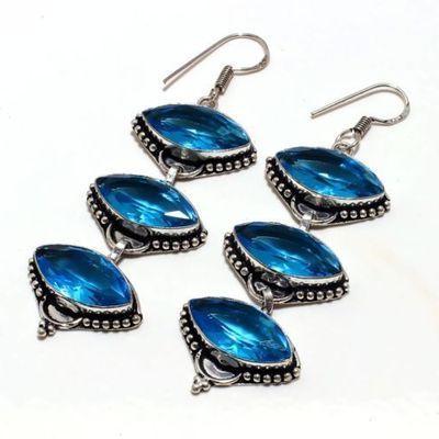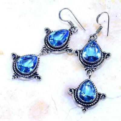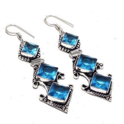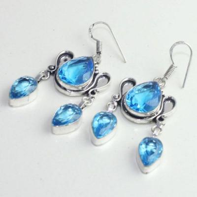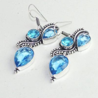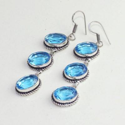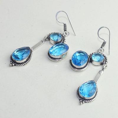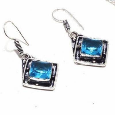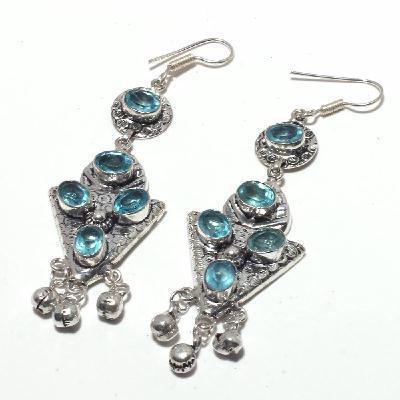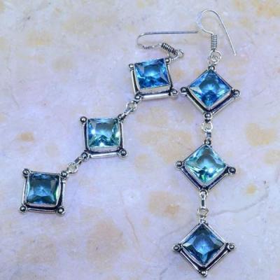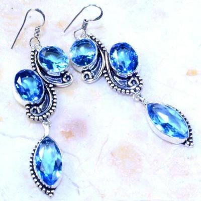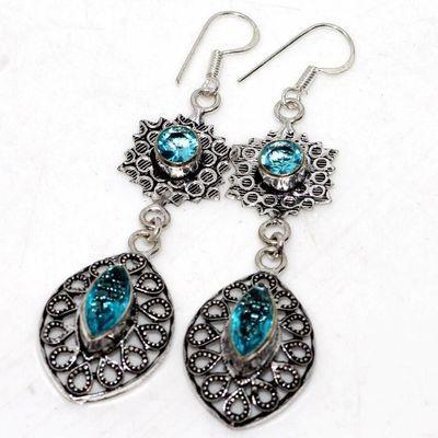 BOUCLES PENDANTS D'OREILLES en ARGENT 925 et AIGUE MARINE