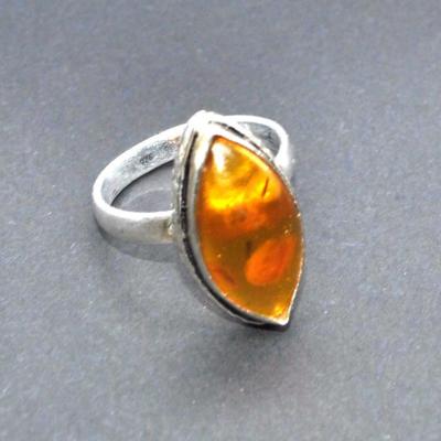 AMB-191 - Jolie BAGUE CHEVALIERE T 57 en AMBRE BLOND 12 x 16 mm et Argent 925 - 25 carats - 5 gr