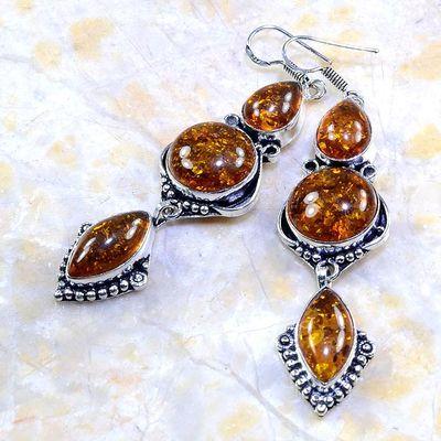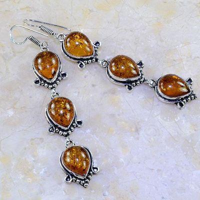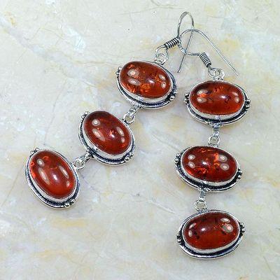 AMB-076 - joli COLLIER + BOUCLES OREILLES en AMBRE MIEL baltique et Argent 925 - 155 carats - 31 gr