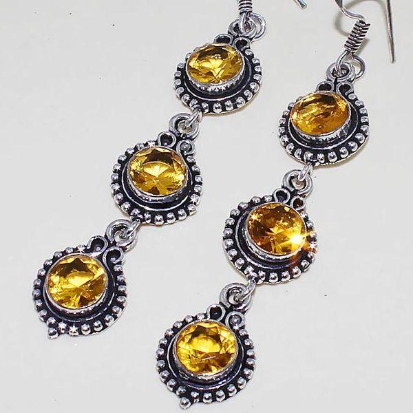 Jolie paire de BOUCLES PENDANTS D' OREILLES avec CITRINE et argent 925