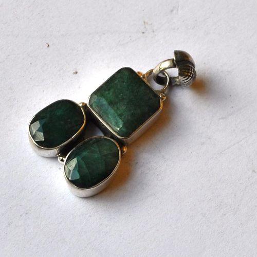 EM-0113- PENDENTIF pendant 35 mm 3 EMERAUDES du Cachemire taillées et facettées 10 x 12 mm Argent 925 - 30 carats - 6 gr