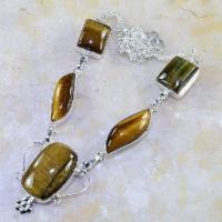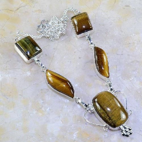 ACHAT – VENTE joli COLLIER, SAUTOIR ETHNIQUE EN ŒIL DE TIGRE et argent 925