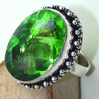 PER-291 - belle BAGUE T 61 avec PERIDOT vert 25 mm - argent 925 - 52 carats 10.4 gr