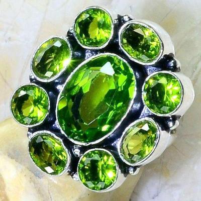 PER-560 - belle BAGUE T 58 avec 9 PERIDOTS verts 6 et 15 mm - argent 925 - 50 carats 10 gr