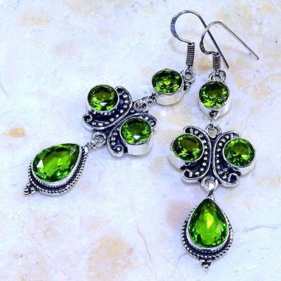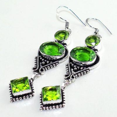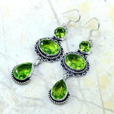 PER-101 - BOUCLES PENDANTS D' OREILLES 75 mm et 6 PERIDOTS - 95 carats 19 gr - argent 925