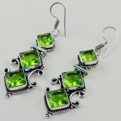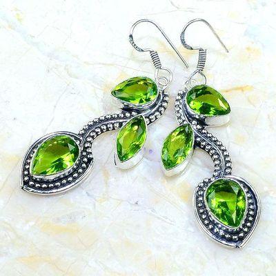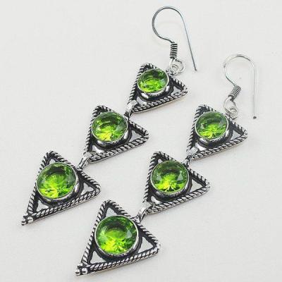 BOUCLES et PENDANTS D'OREILLES en PERIDOT et MONTURE ARGENT 925