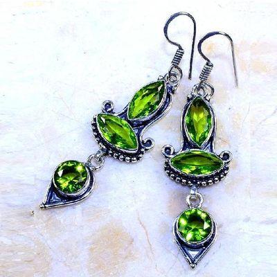 PER-047 - BOUCLES PENDANTS D' OREILLES 75 mm et 6 PERIDOTS - 77,5 carats 15,5 gr - argent 925