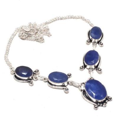 SA-0493 - Joli COLLIER, SAUTOIR, PARURE 6 SAPHIRS Bleus 10 x 15 mm Argent 925 - 130 carats - 26 gr