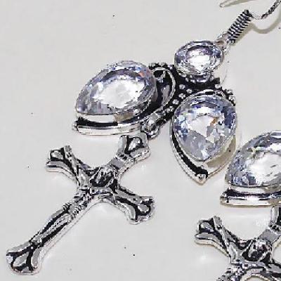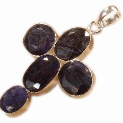 CXT-9076 Belle CROIX LATINE CHRETIENNE ancienne Ag 925 + 5 saphirs bleus 71 cts