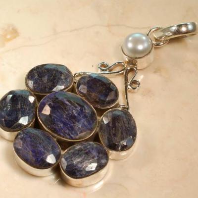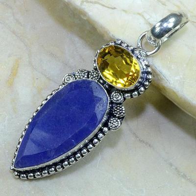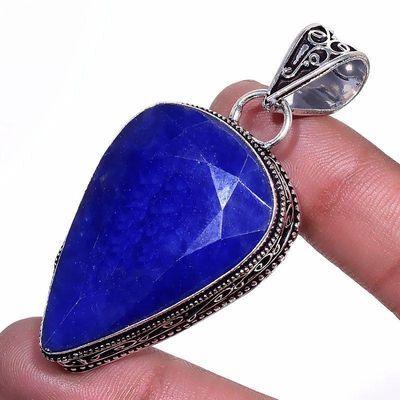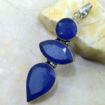 RUB-190 - Superbe PENDENTIF Vintage avec 7 saphirs bleus 72 carats et Argent 925