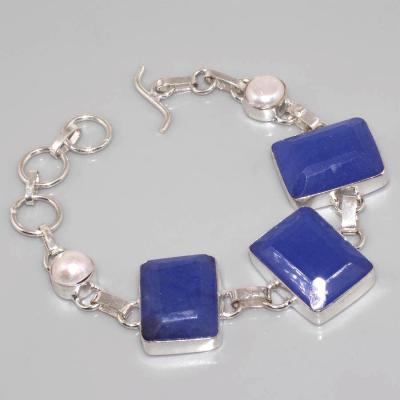 SA-0311- BRACELET en SAPHIR Bleu et PERLES Nacre - Argent 925 - 110 carats - 22 g