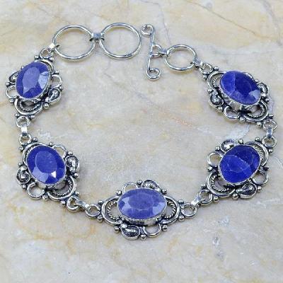 SA-0340 - BRACELET en SAPHIR Bleu du cachemire - Argent 925 - 105 carats - 21 gr