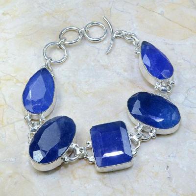 SA-0341 - BRACELET en SAPHIR Bleu du cachemire - Argent 925 - 138 carats - 27,4 gr
