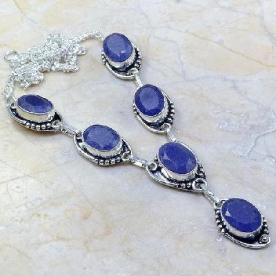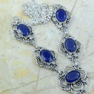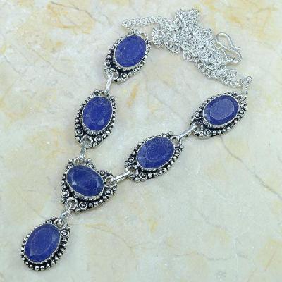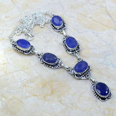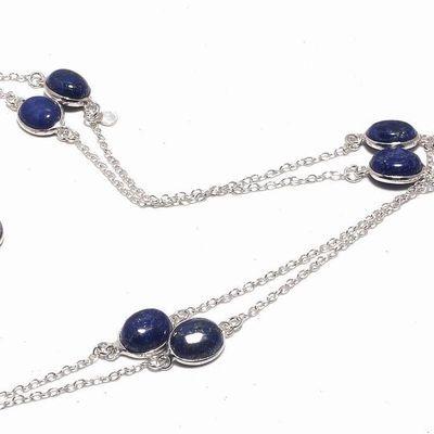 SA-0493 - Joli COLLIER, SAUTOIR, PARURE 6 SAPHIRS Bleus 10 x 15 mm Argent 925 - 130 carats - 26 gr