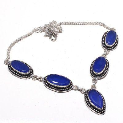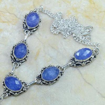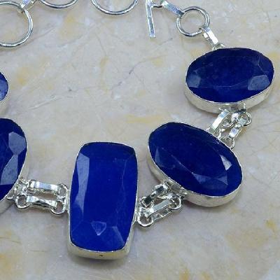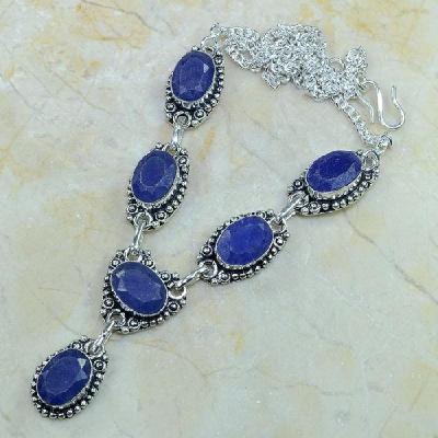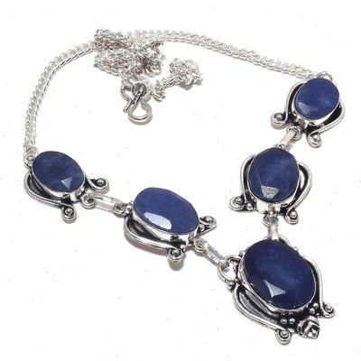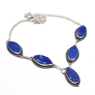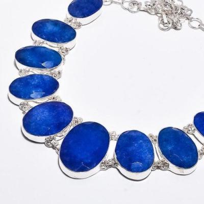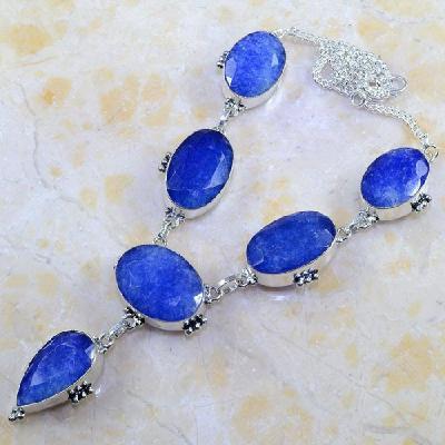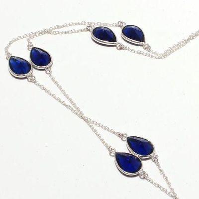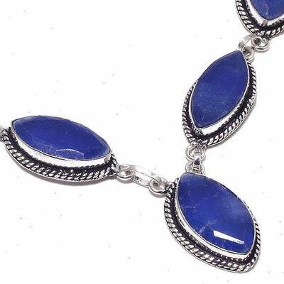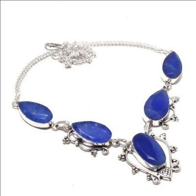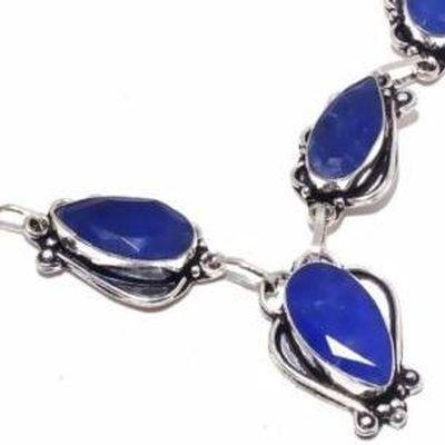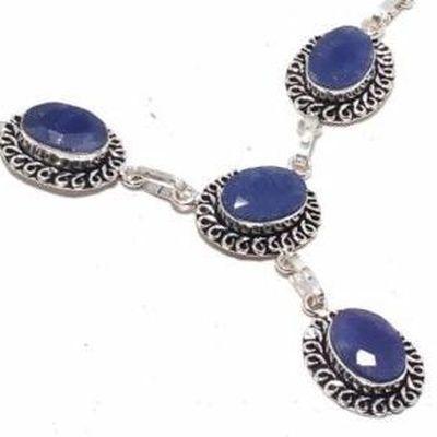 SA-0322 - Joli COLLIER, SAUTOIR, PARURE en SAPHIR Bleu et Argent 925 - 150 carats - 30 gr