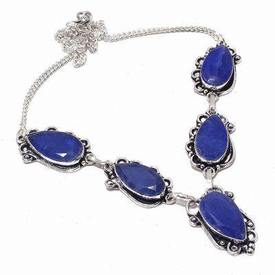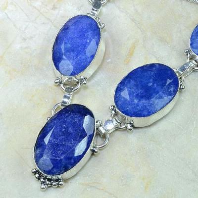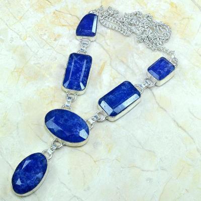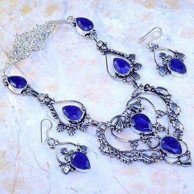 SA-0342 - Joli COLLIER, SAUTOIR, PARURE en SAPHIR Bleu et Argent 925 - 152 carats - 30,4 gr