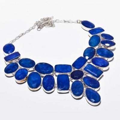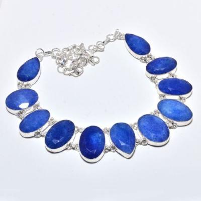 SA-8312B - Joli COLLIER, SAUTOIR, PARURE en SAPHIR Bleu et Argent 925 - 130 carats - 26 gr