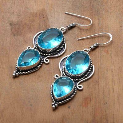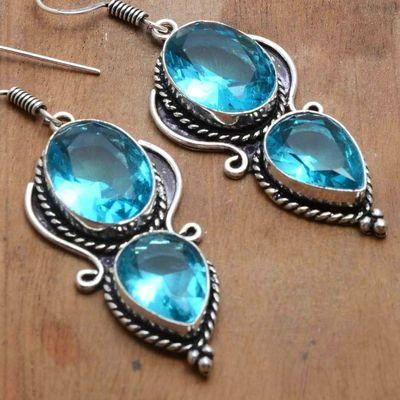 Superbe paire de BOUCLES PENDANTS D' OREILLES 50 mm avec TOPAZES Bleues en argent 925