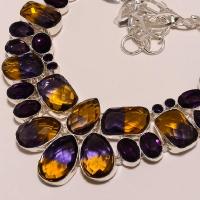 AME-117 - Magnifique COLLIER PARURE - 10 AMETRINES et 18 AMETHYSTES - Argent 925 - 650 carats - 130 gr