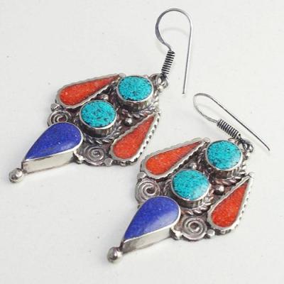 Boucles Pendants d' Oreilles en Corail naturel et Argent 925