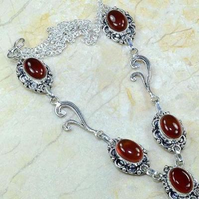 CRN-123 - COLLIER, SAUTOIR, PARURE 6 CORNALINES Rouges polies - argent 925 - 180 carats - 36 gr
