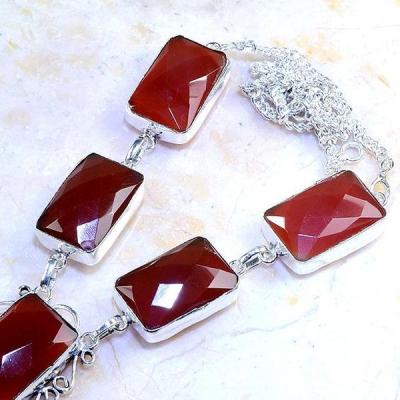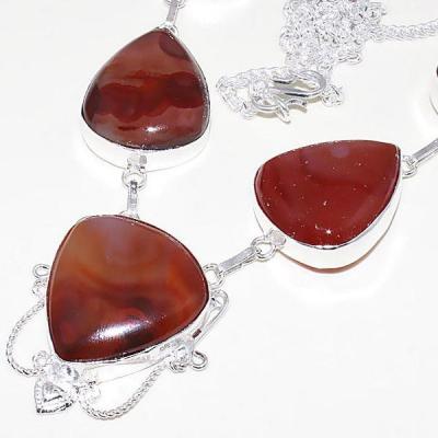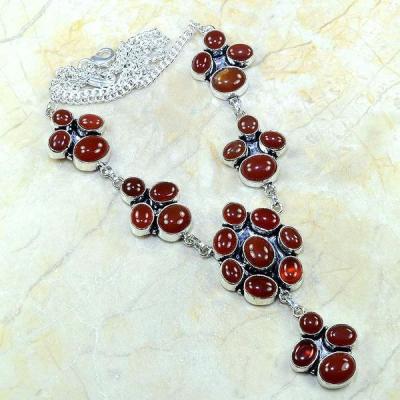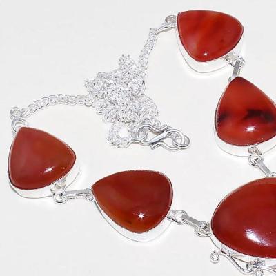 CRN-116 - COLLIER, SAUTOIR, PARURE 6 CORNALINES Rouges polies - argent 925 - 135 carats - 27 gr