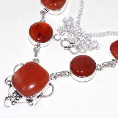 CRN-108 - COLLIER, SAUTOIR, PARURE 6 CORNALINES Rouges polies - argent 925 - 195 carats - 39 gr