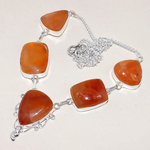 Beau et original COLLIER, PARURE, SAUTOIR en CORNALINE Orange