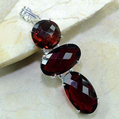 CX-3139 - CROIX PENDENTIF 60 mm avec 6 GRENATS taillés ovales- Argent 925 - 60 carats - 12 gr