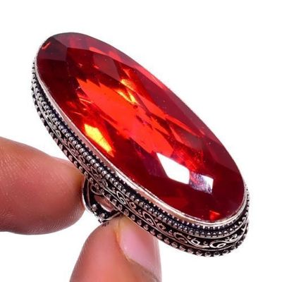 GR-0648 - Enorme BAGUE 52 mm T 59 Gothique Médiévale gros cabochon en GRENAT 14 x 52 mm argent 925 - 110 carats 22 gr