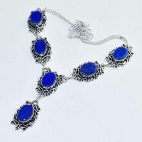 LPC-366 - Joli COLLIER - SAUTOIR - PARURE Ethnique 6 cabochons en LAPIS LAZULI 10 x 15 mm – argent 925 - 155 carats 31 gr