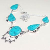 Superbe COLLIER SAUTOIR PARURE Ethnique en TURQUOISE bleue et Argent