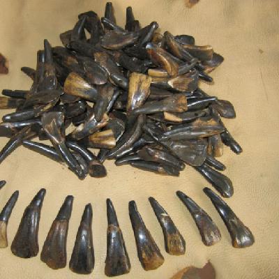 ARC-114 - Lot de 3 DENTS patinées brunes de BUFFALO - BUFFLE - BISON - 40 / 60 mm