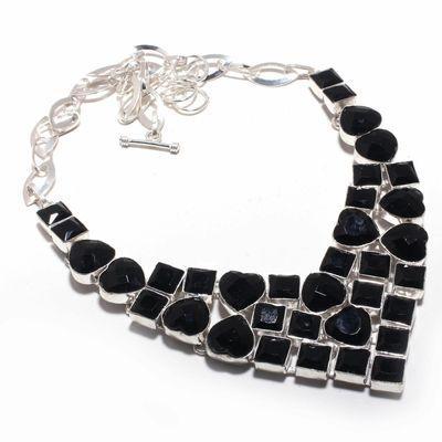 ON-0637 - Enorme !! COLLIER, PARURE en ONYX Noir et monture argent 925 - 500 carats - 100 gr