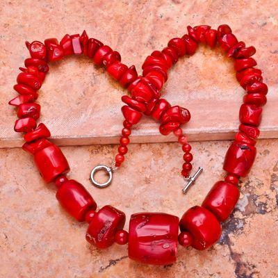 CR-0442 - Beau COLLIER ETHNIQUE - Perles en CORAIL ROUGE SANG naturel 140 carats - 28 gr