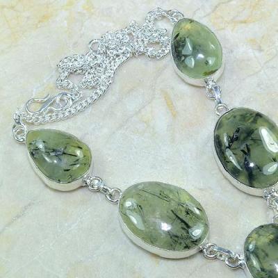 PRN-045 - COLLIER, SAUTOIR, PARURE en PREHNITE Verte - Monture Argent 925 - 250 carats - 50 gr