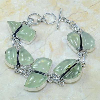 PRN-049 - BRACELET en PREHNITE Verte - Monture en Argent 925 - 230 carats - 46 gr