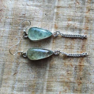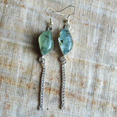 PRN-053 - Paire BOUCLES Pendants d' Oreilles 80 mm PREHNITE Verte - Argent 925 - 60 carats - 12 gr