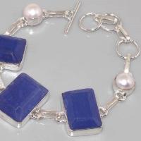 SA-0311- BRACELET en SAPHIR Bleu et PERLES Nacre - Argent 925 - 110 carats - 22 g