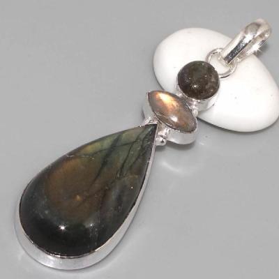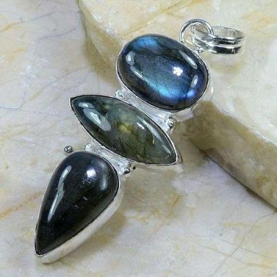LB-0536 - Joli PENDENTIF PENDANT en LABRADORITE et Argent 925 - 70 carats 14 gr